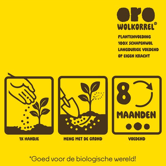 ORO wolkorrel plantenvoeding van 100% schapenwol. Zonder toevoegingen.