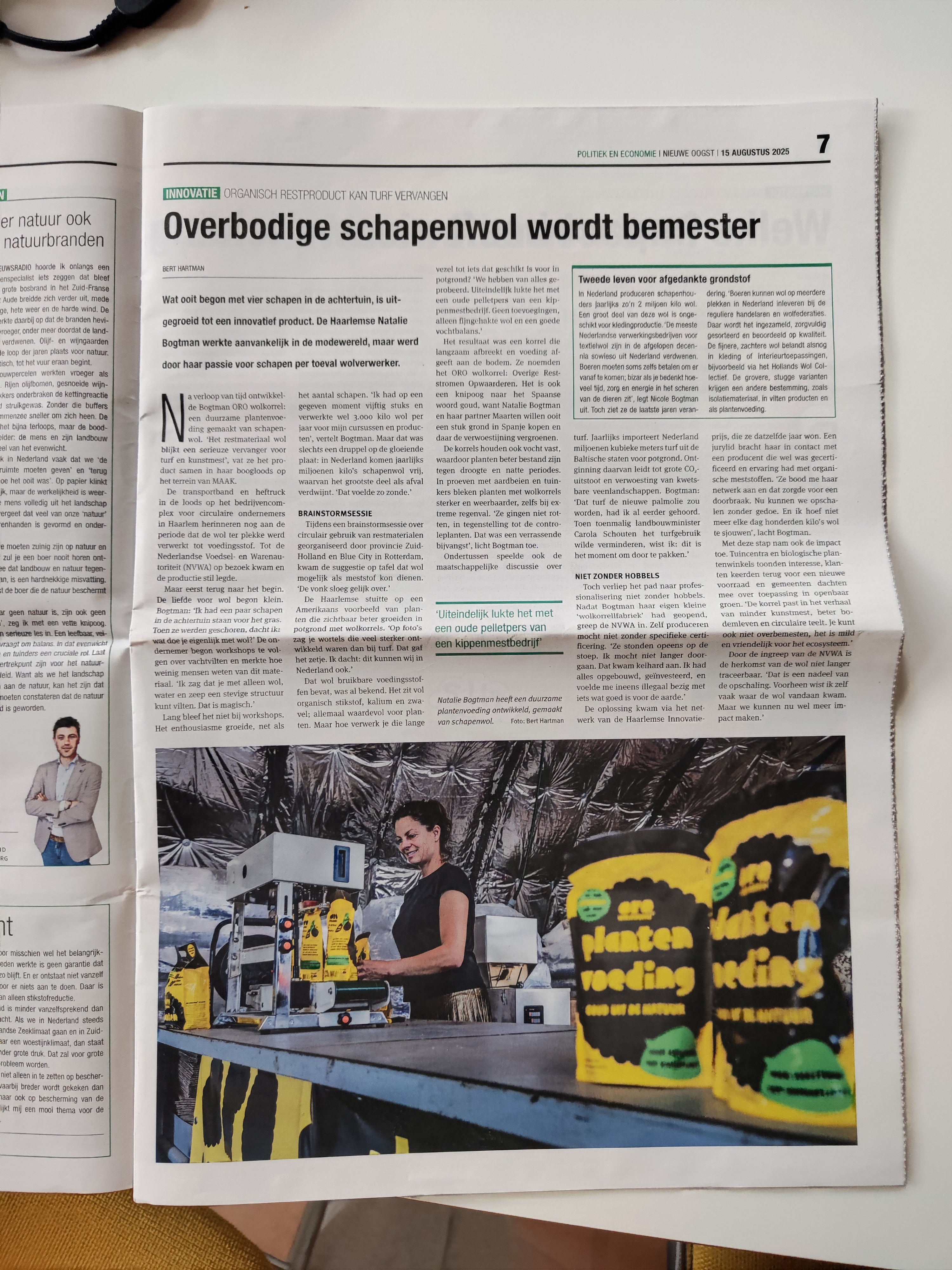 Samen ontwikkelden ze de eerste wollen plantenvoeding van Nederlandse bodem. Ze haalden een pelletpers van een kippenmestbedrijf, startten hun eigen tests, en lieten het analyseren in een lab. Het resultaat overtrof alle verwachtingen: wol zit bomvol stikstof, kalium en zwavel, houdt vocht vast, zwelt op in de bodem en verbetert de wortelgroei van planten drastisch.